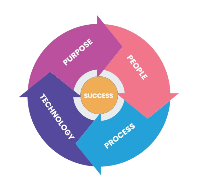 In the modern business world, we see four factors of success: Purpose, People, Process and Technology. The quality and agility of each of these factors is important. Equally important, is how they are combined: the better the flow, the greater the success.