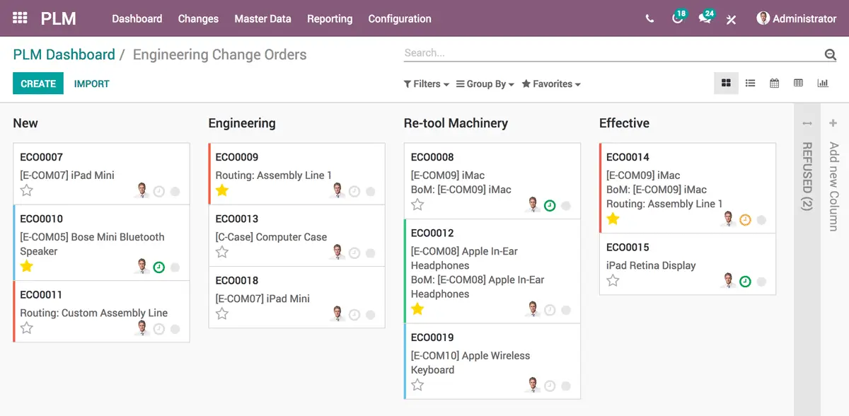 Efficiently manage maintenance requests with Odoo’s user-friendly kanban and calendar views.